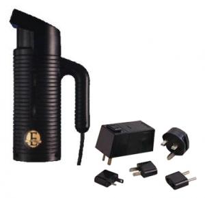 Jiffy 0611 Combo: Black ESTEAM JO601 Handheld Garment Fabric Steamer AND Step Down Voltage Converter, 230V to 120V Adapter 600W, 4 International Plugs