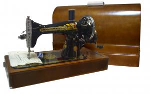 Optional Motor, Stand, Cabinet! Singer 15 Class Metal Straight Stitch Black Beauty Classic HandCrank Sewing Machine Original GoldLeaf Pattern, SpokeWheel, BentWood Carry Case