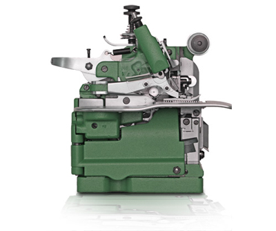 The MG-3D has a swinging edge guided to limit the amount of material being trimmed, and to aid the operator in producing a straight edge. It has added height between the needle plate and presser foot to accommodate thick material, and a coarse feed system to make handle dense wool fabric.